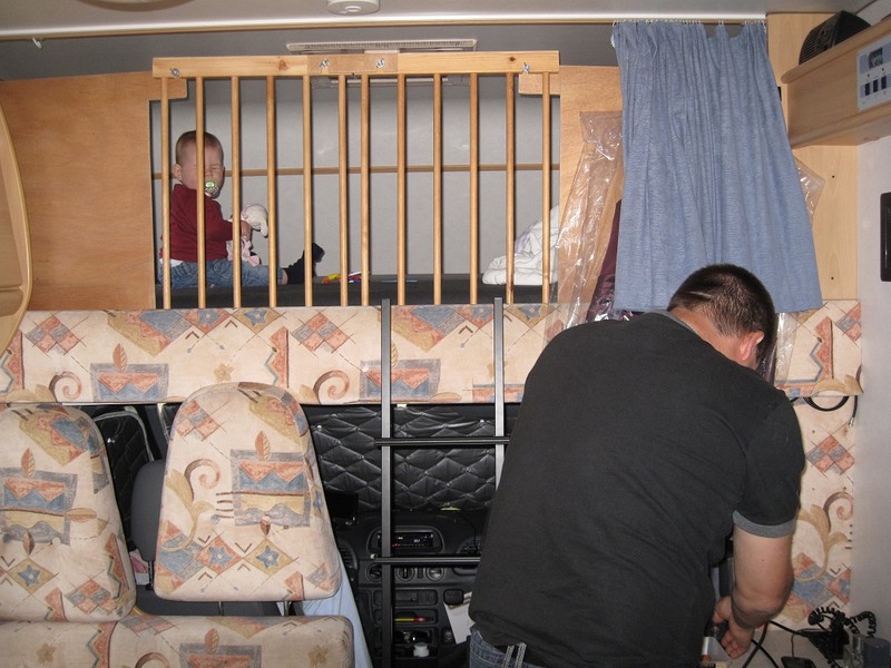 Wir haben gebraucht einen Joint E 33 gekauft. Da liegt im Alkoven ein 1,80 Meter langes Polsterstück mit Brettverstärkung. Das würde sich eignen, das braucht man aber leider, wenn man das Bett aus der Dinette bauen will, unten.
