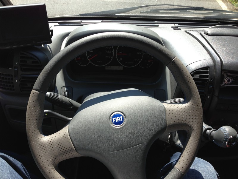 Hallo Ihr, gegen Schwitzehände im Sommer und für ein allgemein besseres Lenkgefühl haben wir unserem Womo heute einen Lederlenkrad-Überzug verpasst. Der hat via Ebay 15 Euro gekostet, ist aus echtem Leder und wurde nach Einweichen in warmen Wasser einfach rumgenäht. Wir sind vom Ergebnis sehr begeistert, also große Empfehlung an alle Plastik-Lenkrad-Besitzer :-) Begeisterte , azrael