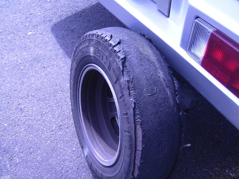 Wir hatten ja auch immer die Devise: Reifen müssen grundsätzlich alle 5 Jahre gewechselt werden. Irgendwann hatte ich die gute Idee, dass die Reifen ja noch so gut aussehen und dass es sicher auch 6 Jahre werden kann. Wir waren dann im Frühjahr in Spanien und kamen vor Ostern zurück von La Jonquera nach Le Boulou. Ich finde, dass wir noch richtig Glück hatten, denn wir waren über die Pyrenäen rüber und bereits am Anfang von Le Boulou, als der rechte hintere Reifen platzte. Mit Mühe sind wir in die Einfahrt eines geschlossenen Campingplatzes gerollt, haben über ADAC Hilfe in Form eines Werkstattwagens bekommen und am nächsten Morgen in eben dieser Werkstatt zwei neue Reifen gekauft.