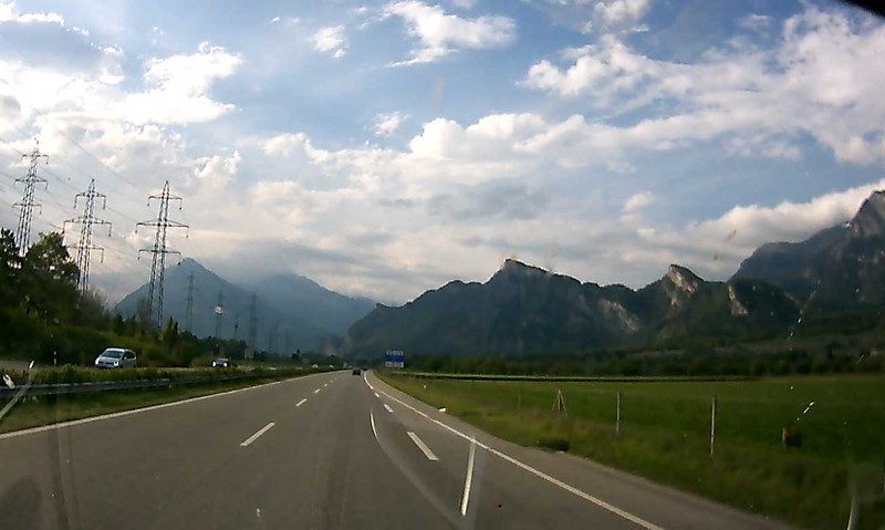 Beispielbild: unten rechts war ein grosses Reh neben der Autobahn, aber auf dem Video nur sehr undeutlich zu erkennen.