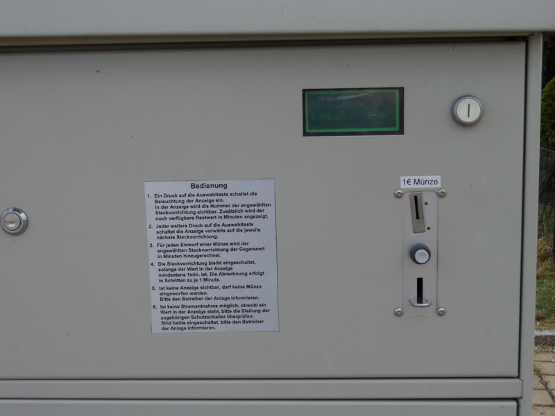 Wir haben auf diesem Platz im April 2014 zwei schöne Tage verbracht, "Besuch" gab es nur von einem weiteren Kastenwagen für eine Nacht. Sonst außer einigen Hundegassigehern, Radfahrern, Joggern usw. nix los. Guter Startpunkt für Radtouren auf dem Elberadweg (gemacht), wandern in den Weinbergen geht vermutlich auch (nicht gemacht). Einige Restaurants im Ort und ein Getränkemarkt mit etwas Lebensmittelversorgung befindet sich direkt neben dem Platz. Das Tagesticket kostet 4€, haben es brav bezahlt - aber ob jemand kontrolliert hätte :nixweiss: ... Strom siehe Foto. Es machte ein wenig den Eindruck, dass man bei der Einrichtung des SP auf halbem Weg stecken geblieben ist, breite Parkplätze, Stromsäule, aber kein Hinweisschild auf der Strecke oder im Ort. Ist auf jeden Fall eine Weiterempfehlung wert! ![]() ![]() ![]() ![]() Hallo, in der Überschrift fehlt die Postleitzahl (Mod's bitte korrigieren). Die genaue Anschrift lautet D-01612 Nünchritz, OT Diesbar-Seußlitz, An der Weinstraße 8, Parkplatz Schloß Seußlitz. Die Stromsäule vom Stellplatz hat eine Besonderheit. Hier wird nicht nach Verbrauch abgerechnet sondern nach Zeit. 120 Minuten kosten 1,-€. Und es sind 6 Anschlüsse vorhanden genau so viel wie Stellplätze. ![]() MfG basi1510 korrigiert Update vom Juni 2018 Alles noch wie beschrieben. Die Parkgebühr ( 4,- € ) ist am Parkscheinautomaten am PKW-Parkbereich zu zahlen. Radwandern auf dem Elberadweg oder wandern in der Umgebung von Schloss Seußlitz. Elbschifffahrt ab Anlegestelle Diesbar und Seußlitz z.B. nach Meissen --> Link |