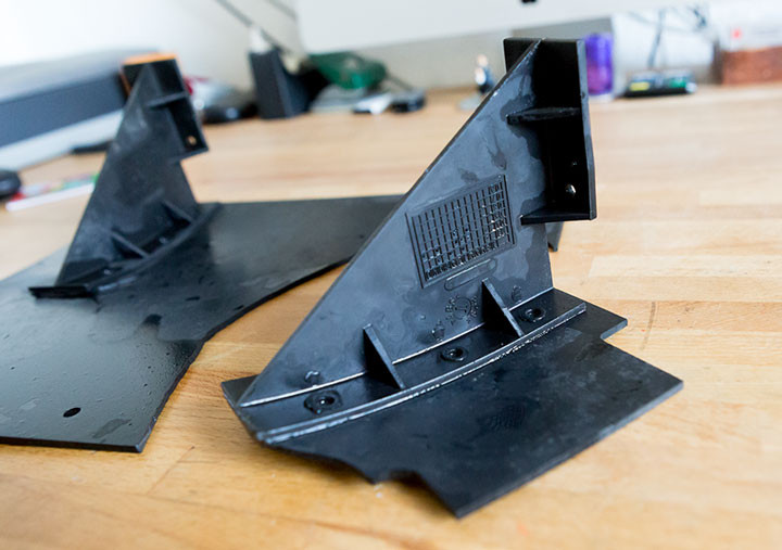 Das Plastik lässt sich leicht durch ein Höherwertiges ersetzen (POM-Platte) und kostet sehr wenig. Jetzt könnte ich natürlich mit viel Mühe die Plastikhalterung, bzw. den Winkel von den Resten befreien (Drehmel) und das neue Plastik anschrauben und kleben. Allerdings ist der Winkel auch nicht gerade ein Wunderwerk der Technik. Der Hebel ist winzig und die Verschraubung ist eher ein Witz. Ein Wunder, das es die letzen sieben Jahre gehalten hat.