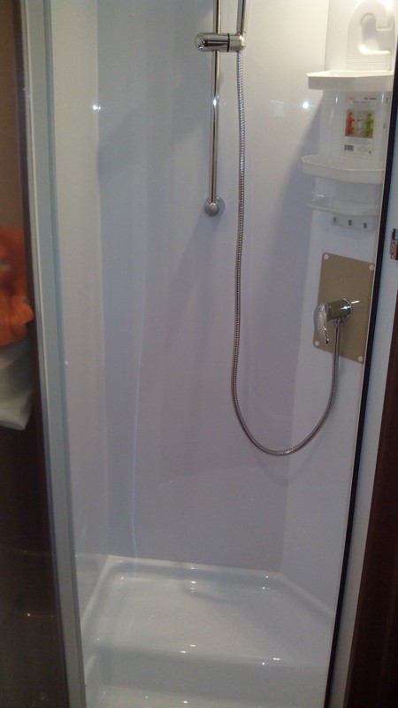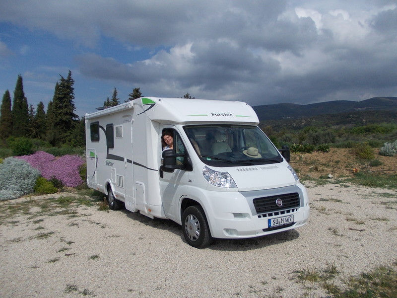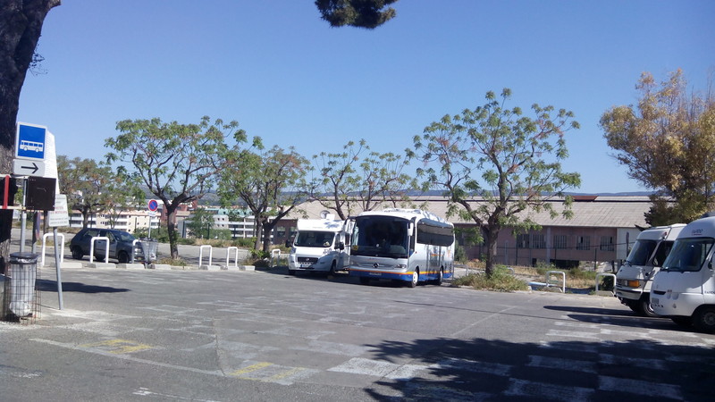 Prima Stellplatz, V/E, hat zwar eigentlich nur 5 Plätze, aber wie man sieht, auch auf den Busparkplätzen wird man toleriert und auch die Höhenbegrenzungen hindern nicht.