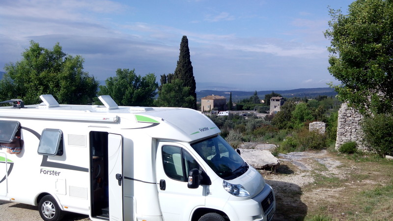 nach Gordes, hier stehen wir immer ganz oben. Wenn man nach 18 Uhr ankommt, kostet es nichts mehr und der Blick ist fantastisch. Ausser uns nur vier Womos. Die V/E kann man unabhängig davon auf dem offiziellen Womo Platz ca 300 m unterhalb machen .