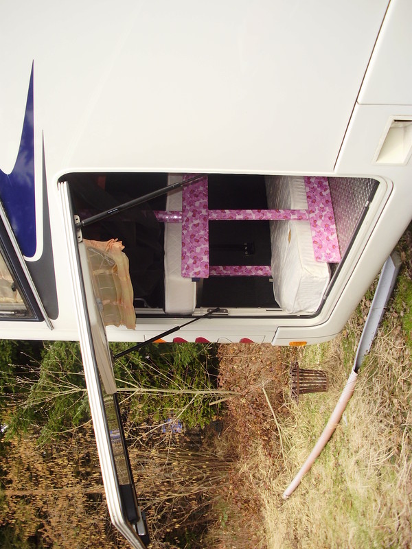 Meine Aufbautüre, die durch ihre Bauart auch recht schwer ist, die reißt einem bei Starkwind schon fast aus der Hand.