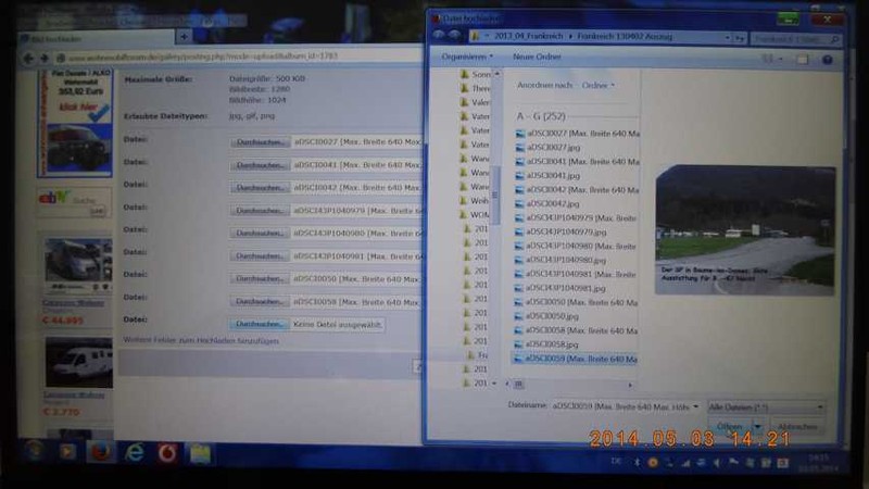 Das Hochladen in das Album hat den Vorteil, dass man bis zu 10 Fotos auf einmal übernehmen kann. Dadurch, dass mann beide Oberflächen im Blick hat, verliert man auch nicht so schnell die Übersicht.