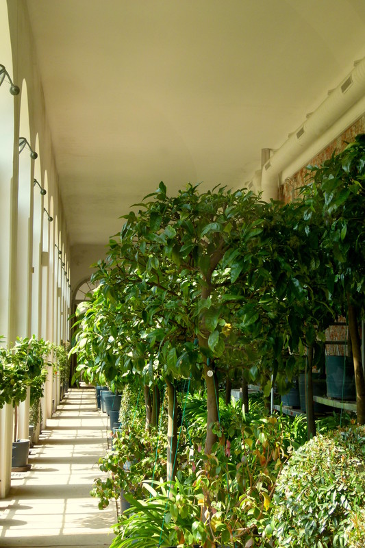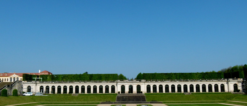 Hinter der Mauer führen kleine Wege durch dichtes Buschwerk mit teilweise schönem Blick in die Ferne oder auf die hohe Schlossmauer.
