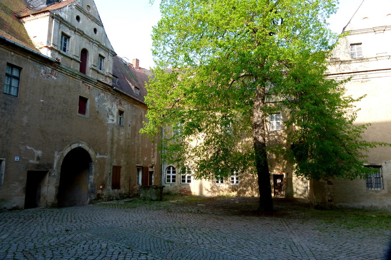 Wie in im Dornroeschenschlaf liegt das Schloss am Rande der Stadt. Der Burggraben ist voellig yugewachsen und jeder Priny haette seine liebe Not, ihn yu durchqueren.