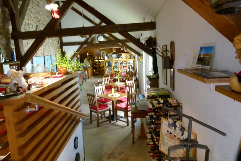 Auf dem Weg zur Schlosskapelle ein kleines, gemütliches Cafe in dem man auch einen guten Tropfen Weinerhält.