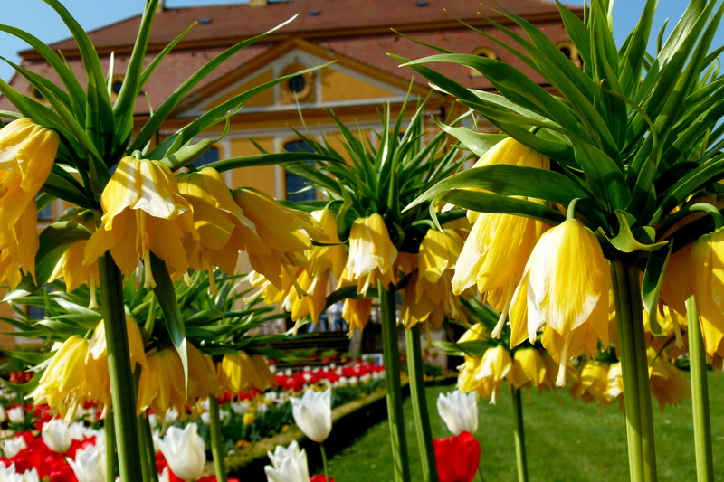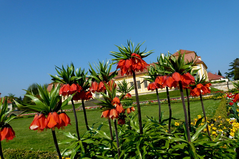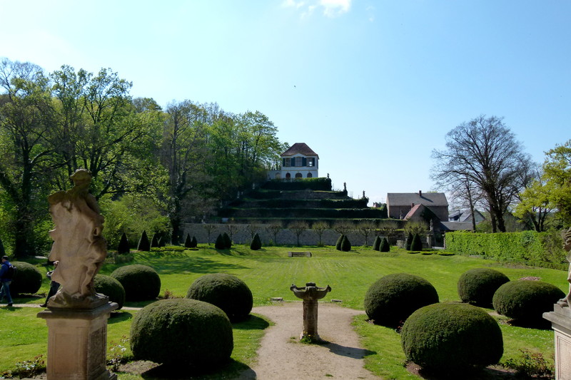 Geht man um das Schloss herum, zeigt sich ein, unvermutet ein wunderschöner Barickgarten, von dem aus die verschiedenen Baustile des Schlosse bewundert werden können.