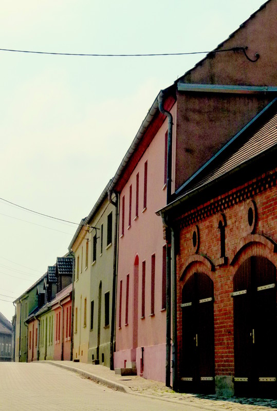 Die Häuser einiger Straßenzüge zeigen sich noch in frischem DDR einheitsgrau.