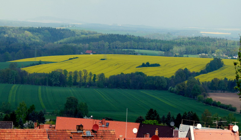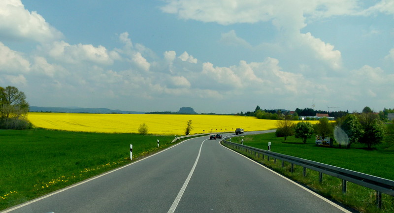 Rapsfelder begleiten mich nun schon die gesamten Urlaubstage und ich kann mich an den Farben kaum sattsehen. Heute morgen ist es diesig, aber langsam kommt die Sonne heraus. Mit zunehmender Wärme intensiviert sich der Duft der Rapsfelder so stark, das mir fast schwindelig wird. Gut das ich keine Allergie gegen diese Pollen habe.