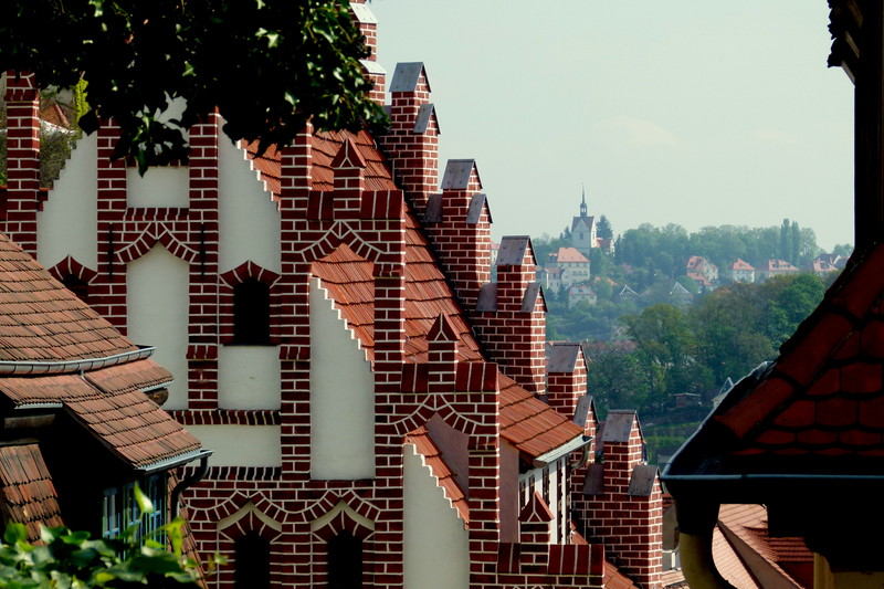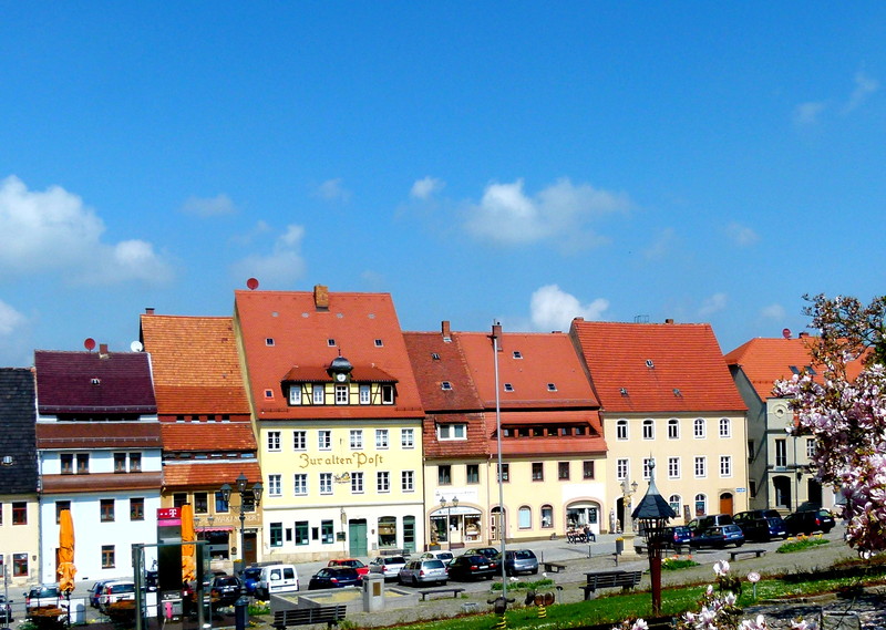 Die Innenstadt von Stolpen besteht aus verschiedensten Haustypen mit interessanten Dachkonstruktionen.