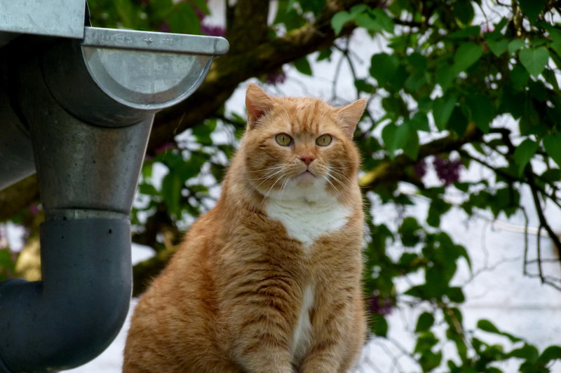 "Auf der Mauer auf der Lauer" ist diese Katze eher nicht. Auf der Mauer schon, aber lauern braucht sie nur auf Touristen, die die Ruhe stören. Futter bekommt sie offensichtlich reichlich serviert.