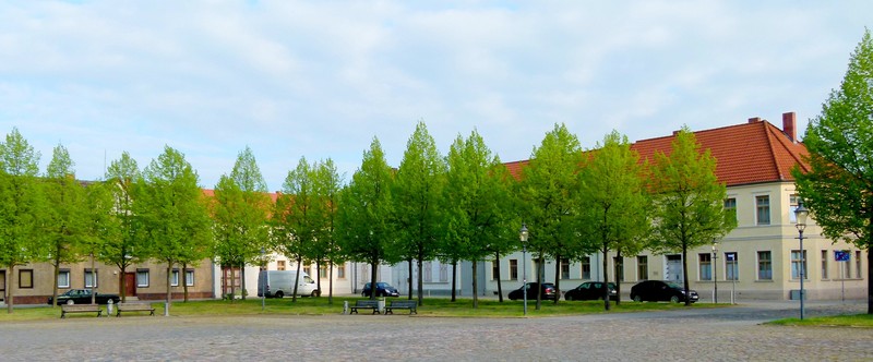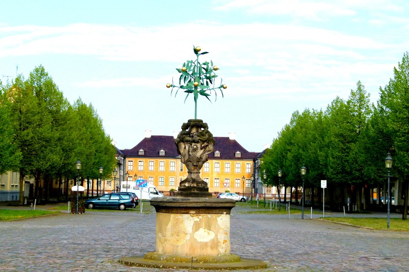 Der Marktplatz sowie alle Straßen laufen paralell auf das Schloss zu.