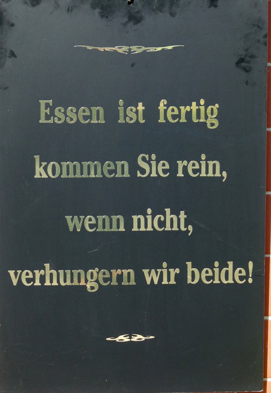 Auch so kann man Gäste in sein Lokal locken. Gesehen an der Straße zum Stellplatz. Ein nettes Restaurant mit Außengastronimie.