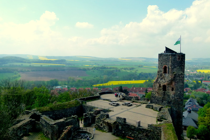 Auch hier von den Schlosszinnen aus ein weiter Blick in thüringer Land. Zeitig wurden willkommene oder nicht willkommene Besucher von hier oben ausgemacht. Entweder bereitete man einen Festschmaus vor oder grub die Kiegsaxt aus :D