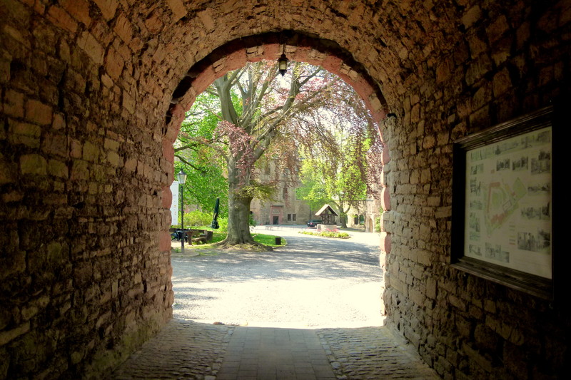 Über eine schmalae Brücke gelangt man in den engen Schlosshof, das kleine Museum und zum Restaurant.