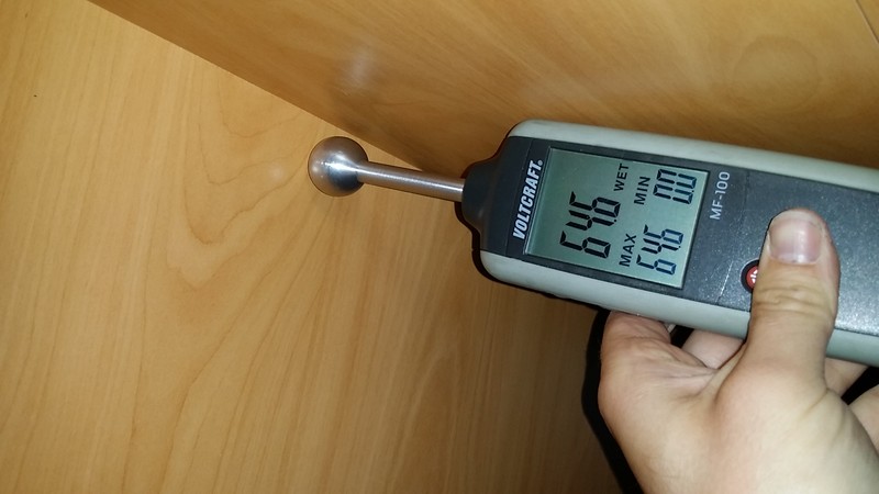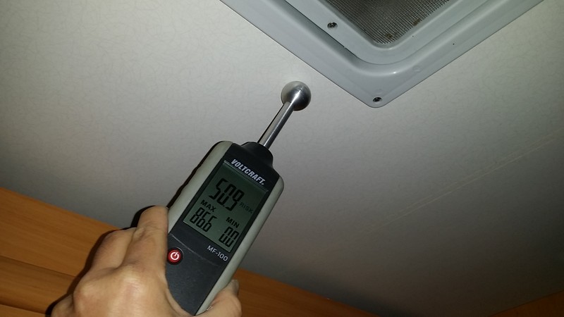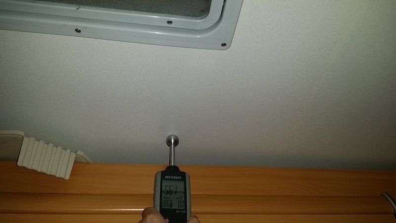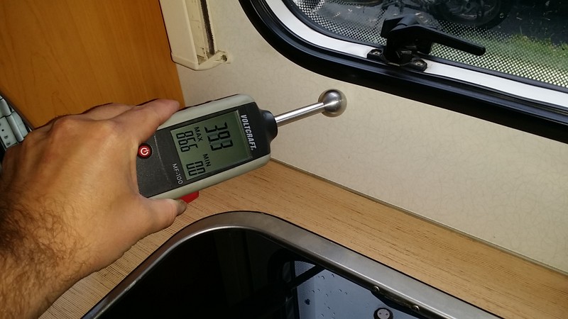 Hallo Mo, bei was? - Bedienung des Gerätes? - Messen? - Auslesen der Werte? - Beurteilen der gemessenen Werte? - Nennung von Vergleichswerten? Hier meine Bilder deswegen die Frage Sorry schlechte Internet Verbindung ![]() ![]() ![]() ![]() Habe ich..... Aber gibt es im Dach Metall bei mir. Und die Rückwand ist auch nur in dem Bereich über 50. Deswegen kann es bei mir Metall sein, eigentlich nicht. Du liegst irgendwo zwischen 36 und 56 und in einem Fall über 60zig. Die Stelle ist aber von hier nicht genau einzugrenzen und deshalb vermute ich mal dort irgendwelche Eisenteile oder Stromleitungen hinter. Auch normale Feuchtemesser reagieren bei verstecktem Metall entsprechend hoch. Es kann durchaus sein das ein hoher Meßwert punktuell auftritt und ein paar Zentimeter weiter nicht mehr vorhanden ist. Was mich stört ist das der niedrigste Wert schon bei 36 liegt, es sollte auch noch drunter liegen meine ich. Empfehlung mach mal eine 2. Messung der neuralgischen Punkte. maredo Nimm doch mal einen einfach Metallspürer (mit dem man so die Wände prüft bevor man reinbohrt) und schau ob der da ausschlägt ? Falls nicht würde ich einfach ein Loch reinbohren (das kannst hinterher mit farbigen Silicon gut verschliessen) und schauen bzw riechen Ach so der niedrigste Wert mitten auf der Wand ca. 10 cm tiefer 5,4 Die Messung auf dem letzten Bild kannst Du vergessen, da der Kugelkopf in alle Richtungen misst. Da ist das andere Holzteil viel zu nah dran. Und wenn die Dachluke und das Fenster in einem Holzrahmen liegen, dann ist es auch klar, dass dort solche Werte zu Stande kommen. Wenn Du unsicher bist, löse an der Dachluke einfach den Innerahmen, dann siehst Du ob da wirklich was feucht ist. Und wenn Du am Fenster unter die Dichtung schaust und da nix feucht ist, solltest Du da auch kein Problem haben. Das mit den kapazitiven Messungen ist so ne Sache ... Auf dem ersten Bild, ist der Wert flächig in der Umgenung auch so hoch? Nein.....nur so 5 cm breit. Denke da ist ein Holz träger. Komisch nur das auf der anderen Seite vom Fenster nix ist. Danke für den Tip mit dem senkrecht. Logisch schon, aber steht selbst in der Bedienung Anleitung nicht. :-P Tag Ich hab keine Ahnung ob in diesem Fahrzeug irgendwo Metall verbaut ist. Sicher aber ist, dass ein ev. verbauter Holzrahmen am Fenster deutlich höhere Werte hat als nur Sperrholz mit Iso drunter. Gleiches gilt für Messungen im Eck wo 2 x Holz berührt wird oder zu nahe an diesem schwarze Fenstergummi. Den kannste übrigens ganz leicht umklappen und nachschaun. Ansonsten. Üben, üben, üben. Ev. hilft mein Meßgeräte Test. Auf Seite 7 sind Meßlisten zu finden. Kurt
