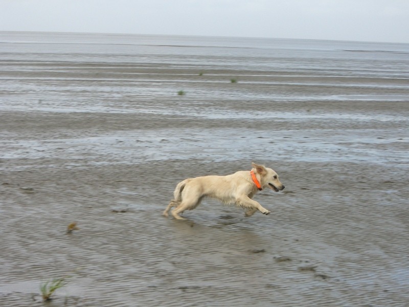Die Nordsee war komisch, manchmal war das Wasser weg und ich konnte im Schlamm toben und buddeln.
