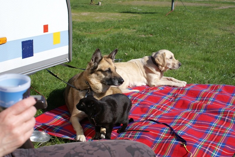 Der war vielleicht frech... wenn Hund mal in Ruhe dösen wollte, dann schlich er sich an, haute mit seinen Krallen zu und dann war er ganz schnell weg. Oft fuhren wir nun wieder mit dem Wohnwagen weg und alle meine Freunde konnten mit, sogar der Kater.