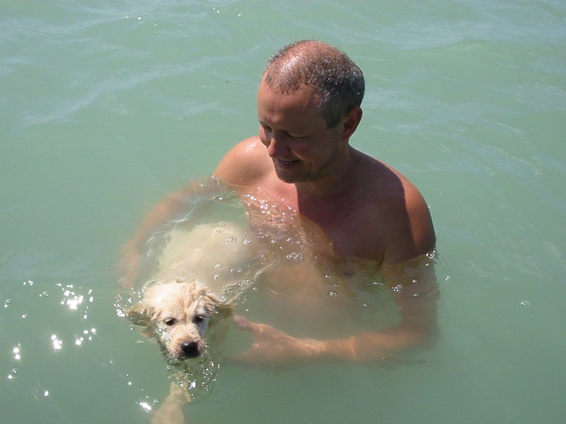Ich bekam ein eigenes Bettchen in einer schön gepolsterten Kiste und wohnte nun unter dem Tisch. In den nächsten Tagen durfte ich dann im Balaton baden