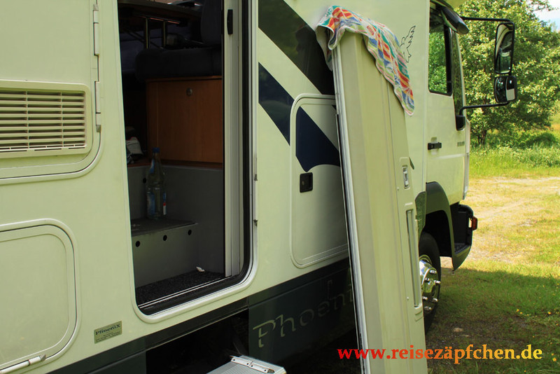 Eine der vielen guten Eigenschaften an unserem neuen WOMO ist unter anderem die Aufbautür: Selbst wenn man sie von außen zuhaut, macht es nur ein leises Geräusch. Ja, es hat deutlich mehr gute als weniger gute Eigenschaften :D Ansonsten wird die Tür von außen zugedrückt und wenn möglich von innen zugezogen. Wir klatschen von außen und von innen, da unser Sensor immer spinnt. Bei der Fahrt geht ständig eine Warnmeldung los: "Die Beifahrertür ist offen". Wir haben ein Filzpad zur Verstärkung dagegen geklebt. Das hilft ganz gut. Klatschen muss man aber trotzdem!