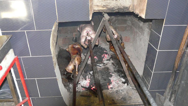 Als ich dem "Annehmer" dort, meinen Wunsch nach Lamm sagte, führte er mich in ein separates Häuschen, worin sich verschiedene Holzkohlen-Grill befanden, die alle brannten. Im grossen Ofen drehten sich bereits 3 Lämmer am Spiess und die wären in etwa 15 Min. fertig. Wir vertrieben uns die Zeit mit einer Auswahl von jogurt-cremeigen Vorspeisen und gemischtem Salat. Dann kam auch schon ein Riesen Teller von frischem Lamm. Zusammen mit einem Bier und 2 Cafe turc, lautete die Rechnung dann auf sagenhafte 60 TL = ca. 20 Euro.