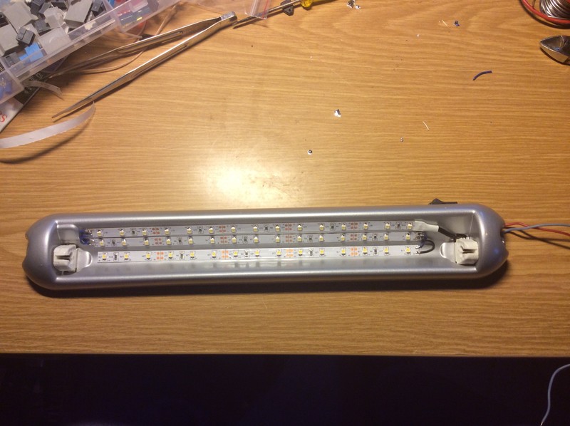 Hier ein Foto mit 3 streifen, der vierte kam später noch dazu. ![]() Olly, ich habe lange damit experimentiert und dann alle Kaltstoffröhren in Küche und Bad durch LEDs ersetzt. Diejenigen im Sitzbereich habe ich allerdings wieder zurückgebaut und an anderer Stelle weiter verwendet. "Das Licht" war und ist einfach besser. Der Arbeitsaufwand ist recht hoch, zumal ja dann auch die Schalter evtl. ersetzt werden müssen, auch teuer und aufwändig. Im Bad wegen der geringen Nutzung solltest Du die Neons weiter verwenden. Im Wohnraum allenfalls zusätzliche LEDs verwenden für spezielle Lese- oder TV-Beleuchtung. Behalte Deine Neons im Wohnraum mit ihren gewohnten Schaltern und dem angenehmen Licht. Und wenn Du nicht gerade batteriemäßig aus dem letzten Loch pfeiffst, sollten die paar mehr Ampere nicht ins Gewicht fallen. Eher schon die Heizung, TV usw.! In jedem Fall ist ne stärkere Batterie deutlich preiswerter und spart Arbeit. :) Leuchtstoffröhren zirhen keinen xl Strom, sondern sind viel besser als Halos. Led Tausch lohnt nicht, allenfalls Tausch gegen warmweisse Röhre. wir haben 2x100Ah, sowie 2x80W solar und die battery war zwar noch nie leer, aber jedes mal wenn ich die dinger einschalte geht die spannung gem. kontrolpaneel um 1-2V nach unten. longo danke für die bilder werde es auch mal probieren lg olly Bei IKEA bekommst du auch fertige Einbau LED-Lampen für den Kleiderschrank. Die Lampen kannst du einfach an 12 Volt anschliessen. Die machen ein tolles Licht. Ich habe die LED-Lampen über der Küchenzeile und im Wöhnraum verbaut.