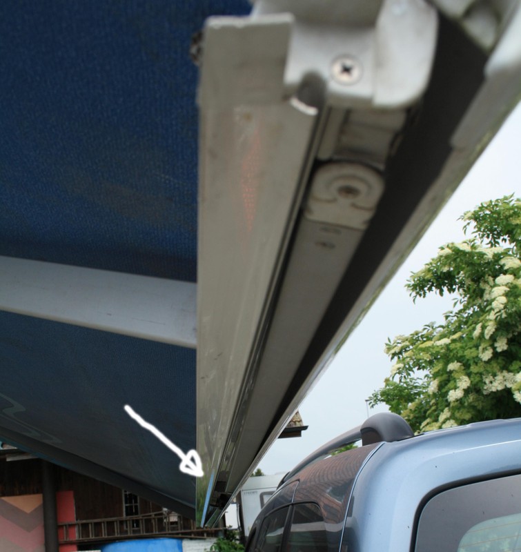 Im geschlossenen Zustand will sich der Mittelteil nicht ganz einfahren. Die ganze Mimik macht einen Bogen. Auch vom vertrauten "klack" beim einrasten keine Spur mehr. Der Markisenstoff läuft schnurgerade. Keine Beulen und Dellen. Ich bin ratlos.