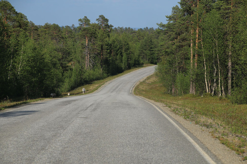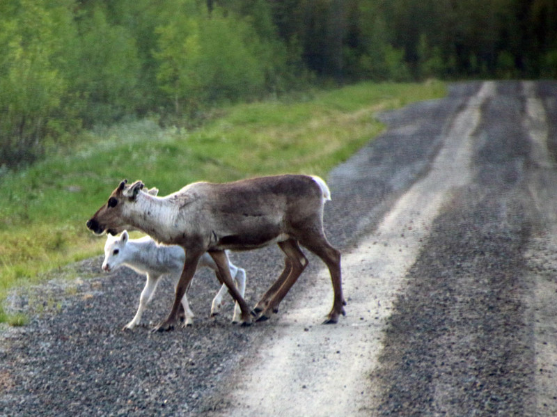 Wir sparen uns so sicher 100km. Die Landschaft ist noch herrlicher, wir sehen Elche, Rentiere und Hasen.