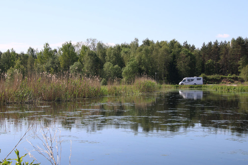 Um zehn Uhr machen wir an der Autobahnausfahrt Skillingaryd an einem schönen Biotop eine Pause und vertreten uns bei einem Spaziergang die Beine. Mit ist nicht so wohl dabei, denn ich bin nicht sicher, ob man mit dem Womo überhaupt in diese Erholungsoase fahren darf. Auch beschliessen wir, für heute keine Autobahn mehr zu benutzen und fahren auf wundeschönen Überlandstrassen Richtung Eksjö, wo ich einen Stellplatz ins Auge gefasst habe. Unterwegs halten wir noch an zwei Seen, machen Fotos und schauen uns auch Campingplätze an. Aber keiner kann uns so richtig überzeugen, darum fahren wir einfach weiter. Bis zu unserem "Ziel", Stellplatz Lyckarp.