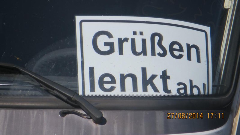 Ach, Du winkst also auch nicht? ;) Das ist wie mit guter Musik - lieber "von Hand gemacht"... So 2 Tage mit Wackelhand . Und soooo dolle wackelt sie garnicht . Haben aber schon 2 nicht Womo Fahrer mit Daumen hoch gegrüsst . :D die gips auch älektrisch, dann wackelts wie doll :!: Moin, habe das Schild gerade in einem WoMo gesehen ..... :razz: ![]() das würde mich schon wegen der Größe beim Fahren ablenken :lol: [quote="dg1yff"]Moin, habe das Schild gerade in einem WoMo gesehen ..... :razz: Das ist so ziemlich das Dümmste, was man sich in`s Fenster hängt. Ich grüße immer und auch manchmal ein zweites mal, dann aber mit dem Zusatz: "Soviel Zeit muss sein"! :tach: Fast immer kommt ein Lächeln zurück, ob es ein mitleidiges ist, mag ich nicht erfragen. Albert