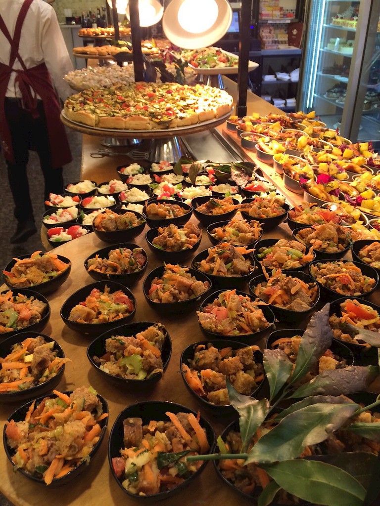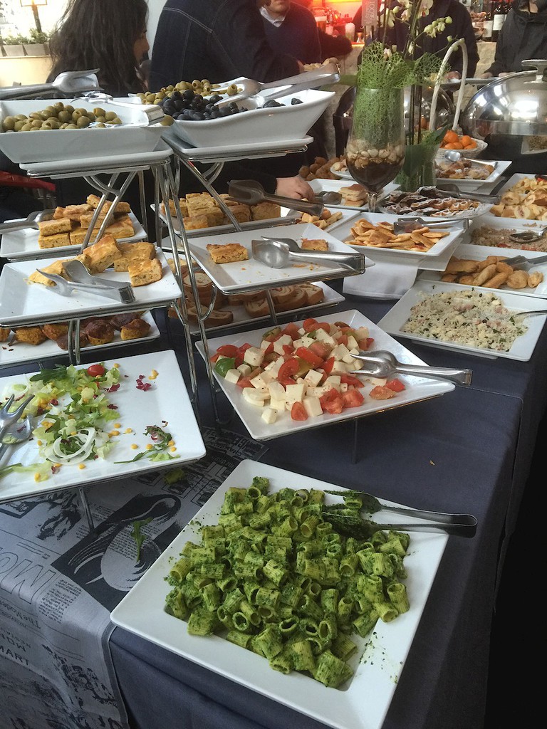 Gibt aber auch interessante All-You-Can-Eat Buffet Angebote bei diversen Chinesen oder Sushi Förderband-"Köchen", die sowohl den großen Hunger stillen als auch mal für eine ordentliche Abwechslung sorgen. Billig muss nicht immer Junk-Food sein.... Oder auch in Italienischen Bars: Aperitivo (Du zahlst 10-12 Euro für ein Getränk und alles Essen am Buffet ist frei - keine Ahnung, wie die das machen ...) Das sieht dann z.B. so aus: ![]() Das meinte ich Acki! Aber Respekt! Ich glaube, zum Fotografieren würde ich da nicht mehr kommen :razz: