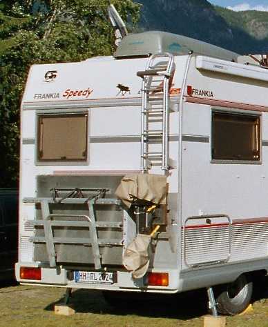 Gesehen hab ich das schon mehrfach : da waren einfach ein paar Eisenwinkel gebogen/gekantet und in die Heckleiter eingesetzt. Daran der AB wie am Heckspiegel befestigt/verschraubt. Sah professionell und haltbar aus. Kann aber nix über Dimensionen und Materialien sagen. Glaub aber nicht, daß die 25 kg des Motors ein Problem sind, die Leiter muß auch 100plus kg abkönnen ... Muß da zum Transport auch die Schraube ab :?: In jedem Fall wäre Diebstahlschutz da hinten auch ein Thema. für den Diebstahlschutz gibts ein ummanteltes Drahtseil mit Vorhängeschloss... Mich würden mal Bilder von so einer Konstruktion interessieren. Quincy Das hatte ich schon...war der erste Gedanke, man sieht aber keine Details. Trotzdem Danke. Hab mir selbst was ausgedacht und werd es auf unserer Masurentour testen. Quincy |