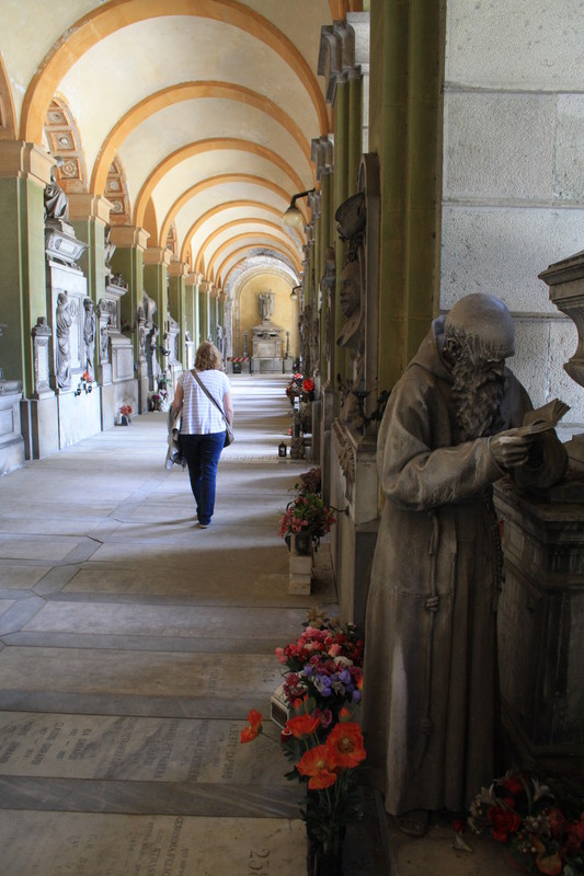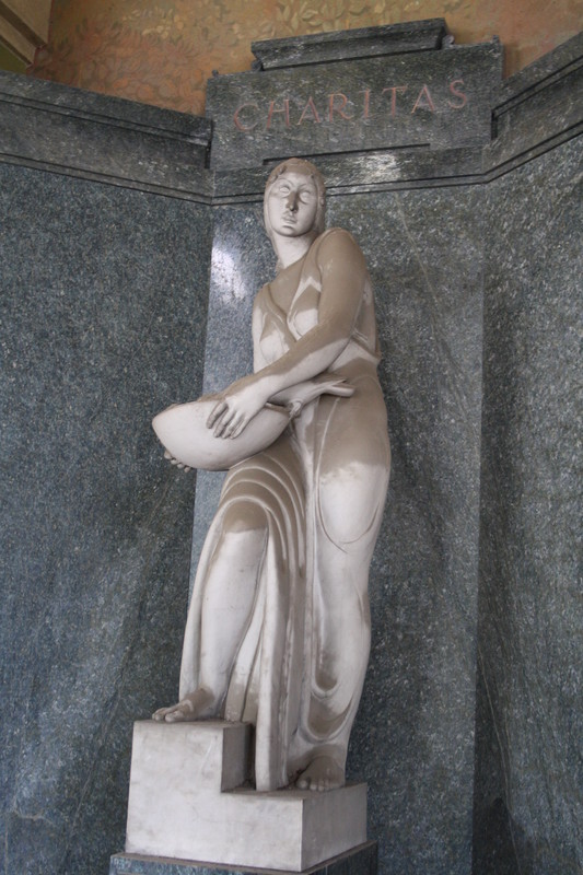 durch langgezogene Gänge gingen wir an zahllosen Nischen vorbei, viele sind dort bis unter die Decke "beerdigt" , aber viele reiche Leute schufen sich anmutige, große, manchmal gewaltige Grabmähler.