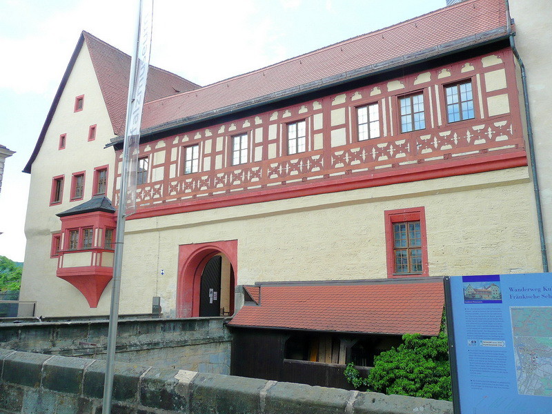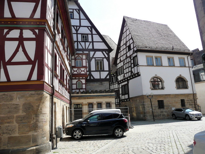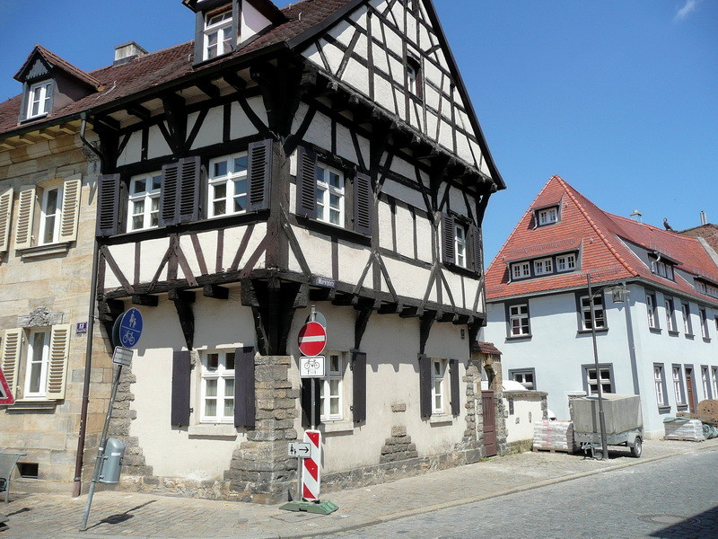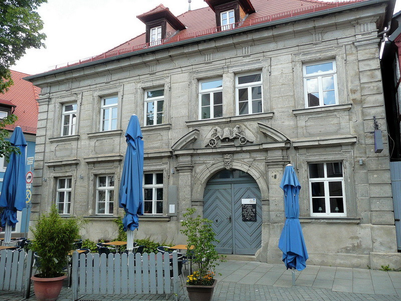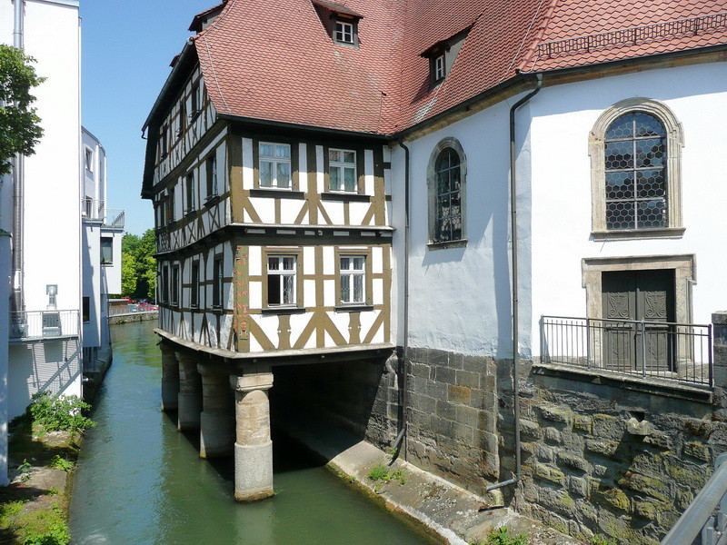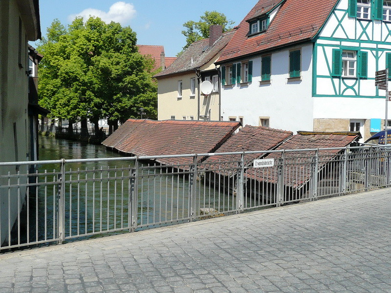 Die Kammerersmühle in der Wiesentstraße ist nicht nur wegen ihres hübschen Fachwerks ein Blickfang. Das 1698 erbaute Gebäude hat sich nämlich im Laufe der Jahre einseitig zur Wiesent hin abgesenkt und wurde daher von den Forchheimern “Schiefes Haus” getauft. Heute ist das eine Gaststätte mit stilecht belassenen Räumen. Montag Ruhetag – immerhin hätten wir besichtigen gedurft.