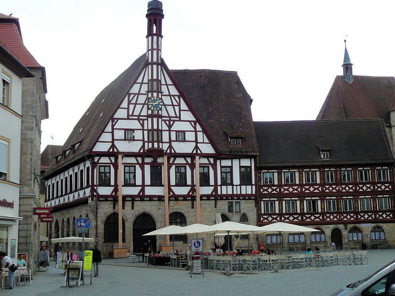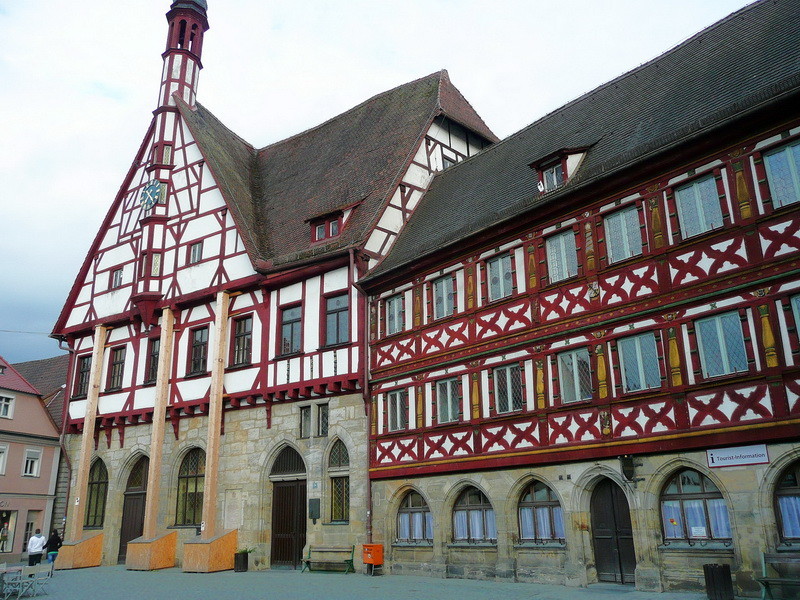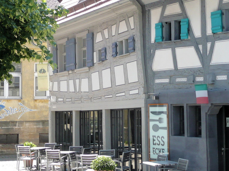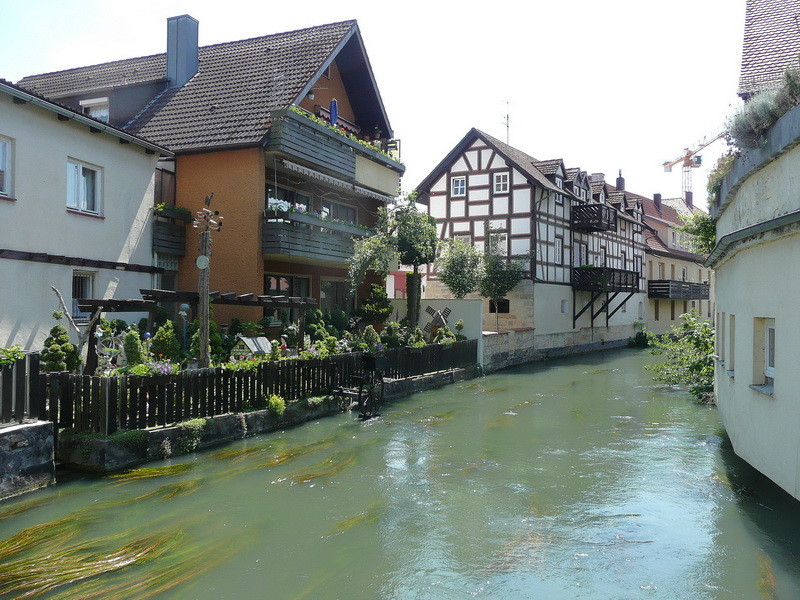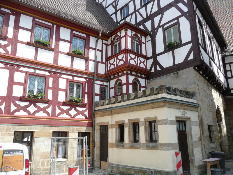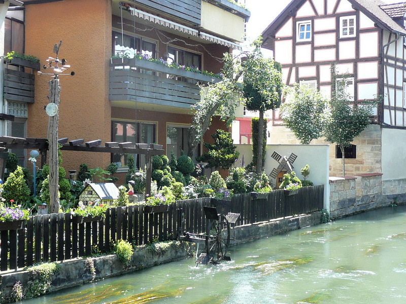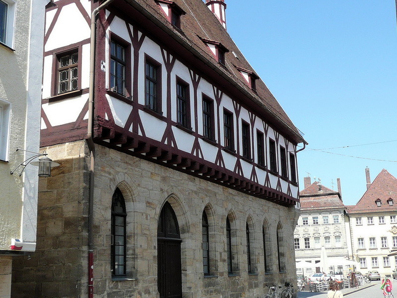 Die Kammerersmühle in der Wiesentstraße ist nicht nur wegen ihres hübschen Fachwerks ein Blickfang. Das 1698 erbaute Gebäude hat sich nämlich im Laufe der Jahre einseitig zur Wiesent hin abgesenkt und wurde daher von den Forchheimern “Schiefes Haus” getauft. Heute ist das eine Gaststätte mit stilecht belassenen Räumen. Montag Ruhetag – immerhin hätten wir besichtigen gedurft.