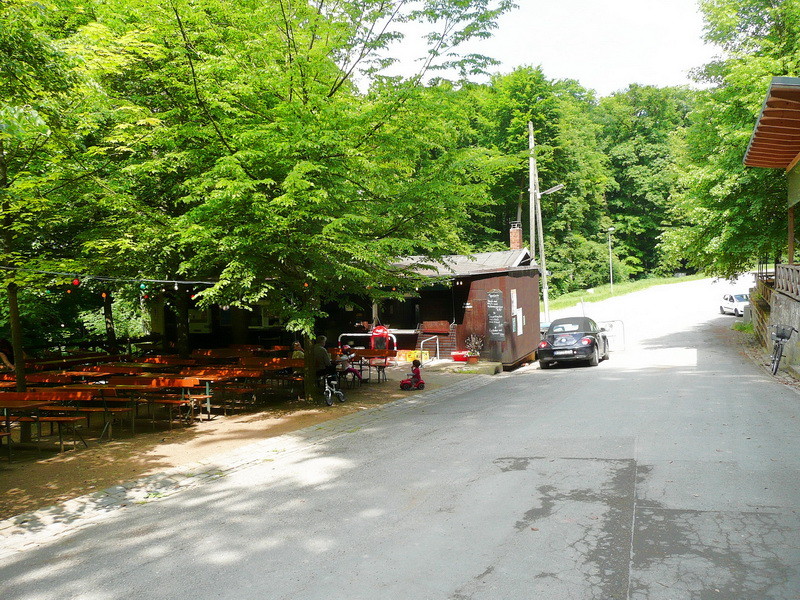 Dort am Ufer der Wisent an der Straße hätten wir auch sitzen können, war uns aber zu hektisch! Im Garten war´s eindeutig schöner ..