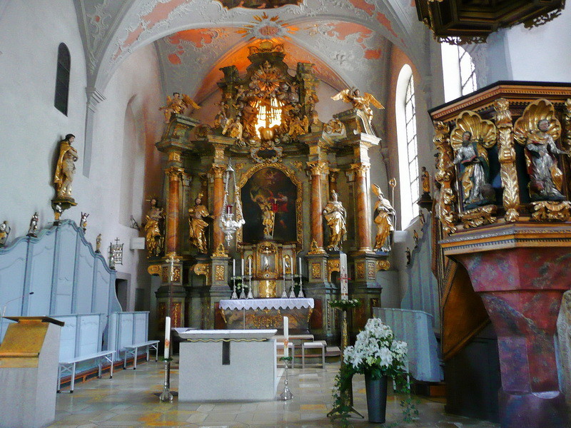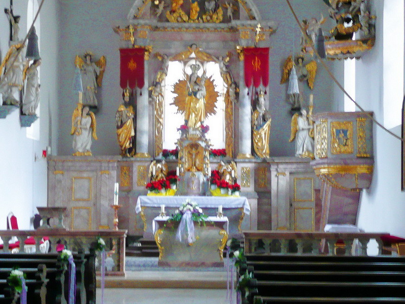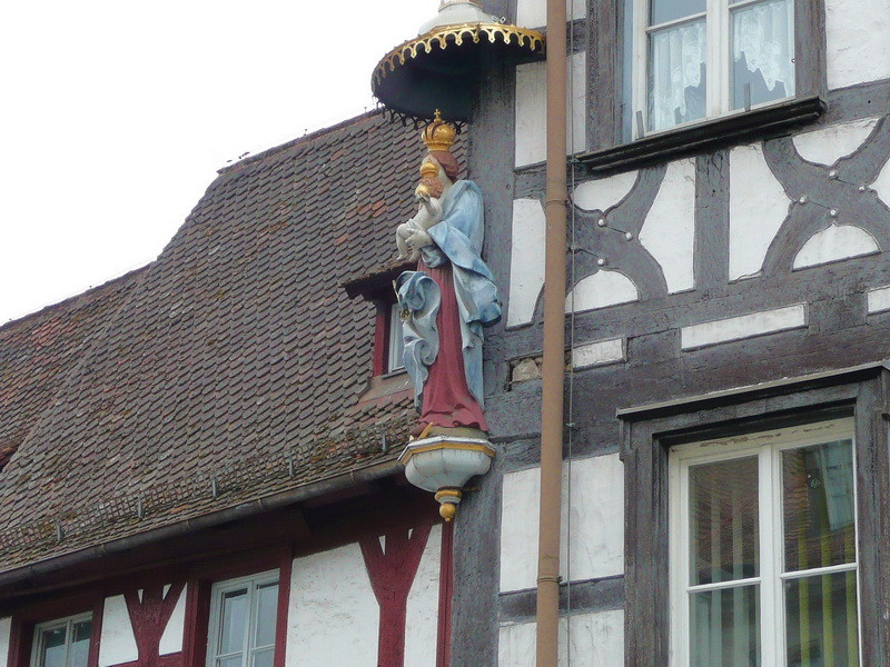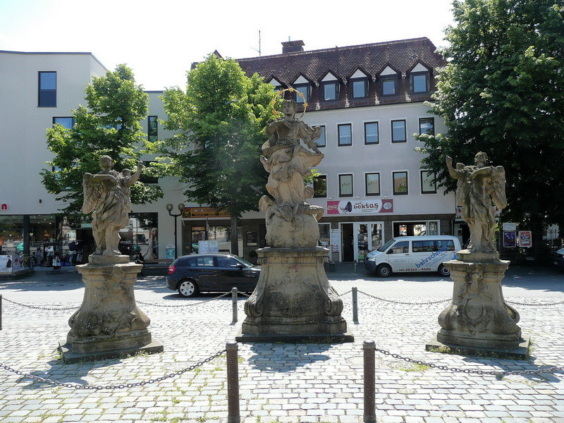 Auf dem Paradeplatz erweckt eine Marienfigur, der zwei Engel zur Seite gestellt wurden, die Aufmerksamkeit der Besucher. Diese Figurengruppe, die stets ihr Augenmerk auf das rege Treiben auf dem vor ihr liegenden Platz gerichtet hat, ist vermutlich ein Werk von Georg Reuß aus dem Jahr 1747. Sie ist seitdem sozusagen bei all den Veranstaltungen, die hier stattfinden, mitten im Geschehen.