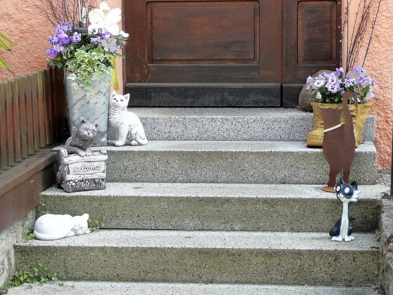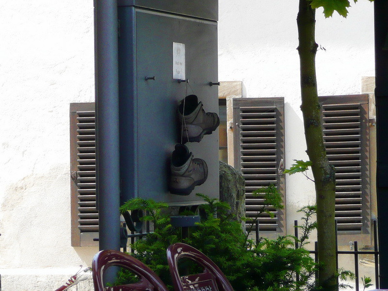 Mittlerweile ist es Nachmittag geworden – noch zu früh zum Abendessen, aber : Kaffeezeit ! Beim Rundgang durch den Ort war uns dieser schöne und schattige Garten aufgefallen. Die Wanderstiefel weisen auf ein Wallfahrts-Logis hin. Dort haben wir ausgezeichnet Kaffee und Kuchen genossen.