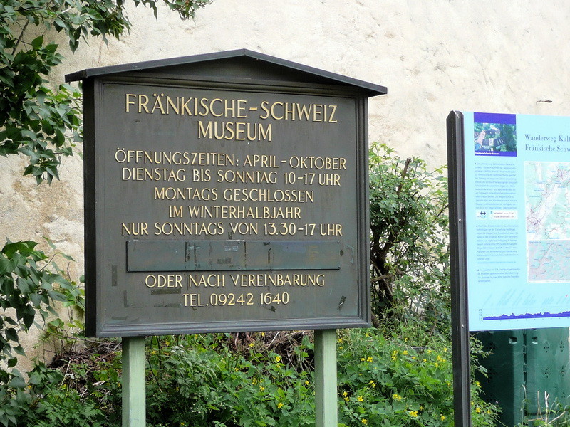Im Laufe des Nachmittags machen wir uns langsam wieder auf dem Heimweg. Wir haben vorher aber noch eine Station geplant – das Fränkische Schweiz Museum in Tüchersfeld. Im Reiseführer ist es als sehr sehenswert und unterhaltsam/anschaulich beschrieben. Das fahren wir jetzt an …