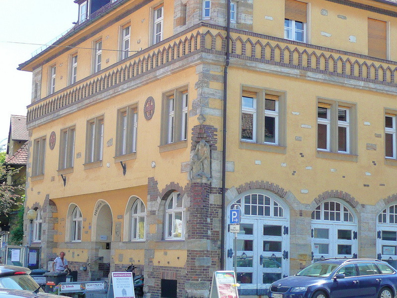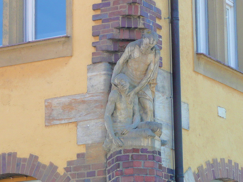 Auch eine schöne Fassade. Aufgrund der Skulptur vermuten wir „Altes Krankenhaus“
