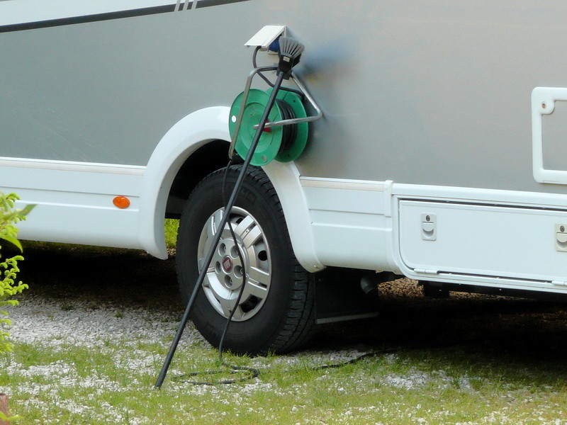 Gegen Abend kommt noch ein anderes Womo auf den Platz und zieht in unserer Nähe ein. Dieses System der Kabeltrommelbefestigung fand ich wert zu dokumentieren … :D Ich tippte auf Leihmobil 8)
