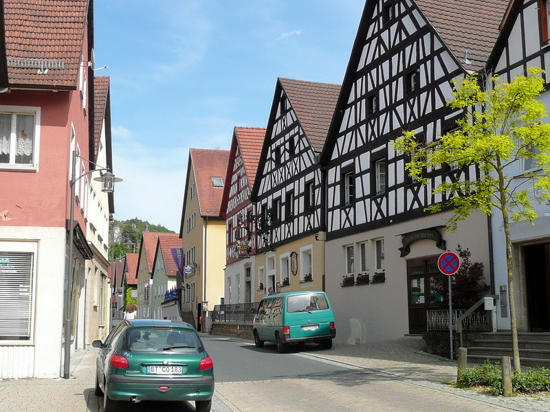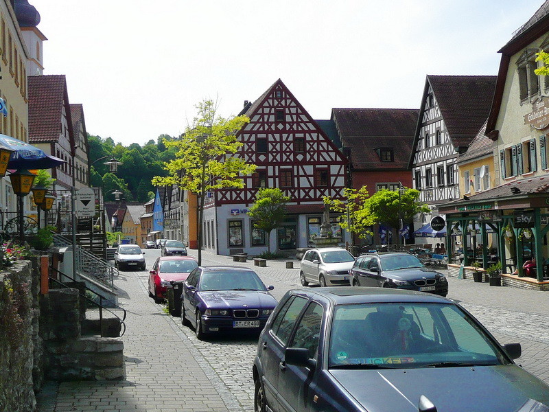 Heute drehen wir eine Runde nach Ebermannstadt. Dort hatten wir auf der Herfahrt nur ganz kurz reingeschaut, hatten keinen Platz auf dem SP dort. Jetzt wollen wir das genauer besichtigen.