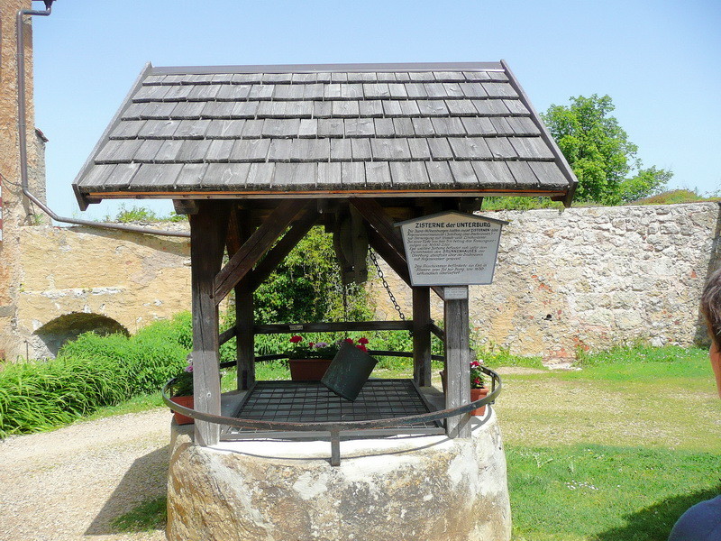 Der Ziehbrunnen führt keinen Schacht bis zum Grundwasser, sondern endet in einer Regenwasserzisterne. Die Wasseranlage wurde ausschließlich in Belagerungen verwendet. In einer Urkunde von 1630 wird überliefert, dass Esel das Wasser vom Tal aus zur Burg beförderten.