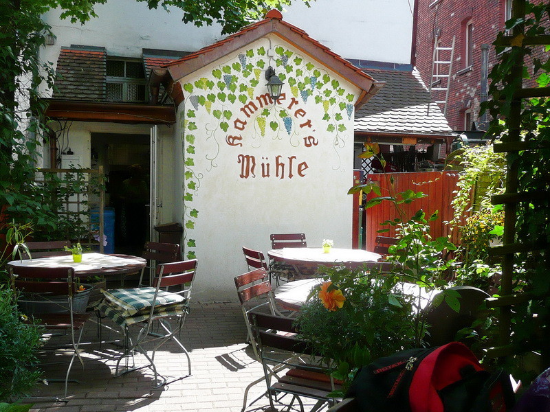 Besichtigen macht hungrig ! Heute ist die Kammerers Mühle geöffnet, beidem schönen Wetter sitzen wir im Mühlengarten direkt an der Wisent, schön schattig und ruhig, weg vom Verkehr.