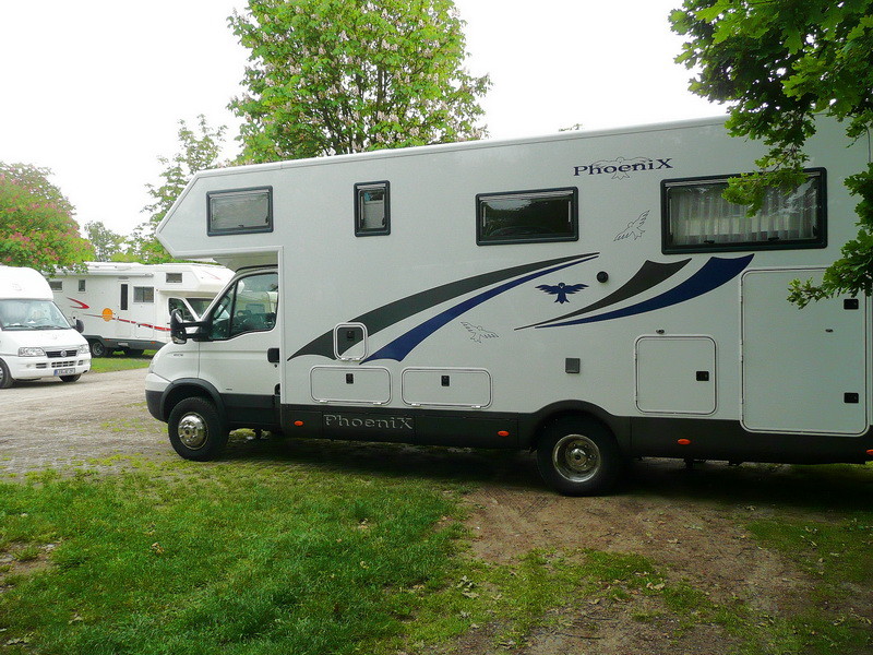 Wir liegen in unserer üblichen Zeit und kommen wie immer erst Mittags weg. Macht ja nix, wir haben wahrlich keine lange Strecke vor uns. Eine Premiere - gastanken in den großen Tank. Bisher haben wir ja noch von dem Vorbesitzer gezehrt, jetzt sind wir aber ziemlich leer. Immerhin : es gehen fast 60 l (von 62) rein, lang hätte es nicht mehr gereicht. Wir fahren auf der BAB nach Forchheim, dort finden wir sofort den SP aus der Sportinsel und ziehen ein. Wir sind früh dran und können (noch) einen Platz aussuchen, später wird´s schon deutlich voller.