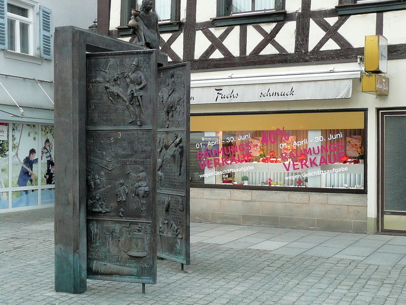 Die “Porta Vorchheimensis” ist ein Geschenk des Rotary Clubs Forchheim an seine Heimatstadt. Seit 2002 öffnet sie in der Fußgängerzone dem Betrachter Tür und Tor zur Vergangenheit der Stadt. Das Werk von Harro Frey stellt die wichtigsten Stationen der Forchheimer Geschichte in 12 Bildern dar.