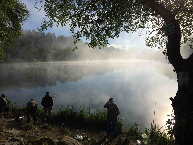 Erst Champignons mit Zwiebeln auf dem Cadac, dann Zanderfilet mit Knofi, und Zitrone (vom Markt), dazu Baguette und Salat und leckeren Wein.